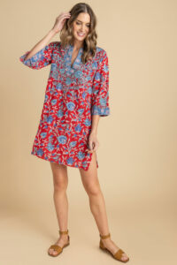 We love florals. The colors in this floral are suited to everyone. The fit is slimming without being fitted. Side slits make it perfect as a short dress, a cover-up or with jeans or leggings. It’s perfect for transition into spring and throughout the summer.