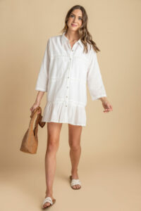 Tyra is airy and cool and the perfect coverup for the beach or the pool. It’s causal but feminine and comfortable for lunch as a coverup.